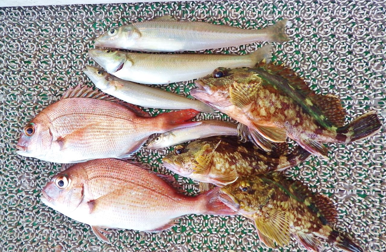 Y口さん1人、45cm/1.2kgのマダイ、チヌ4匹、ベイケン、ベラなど。