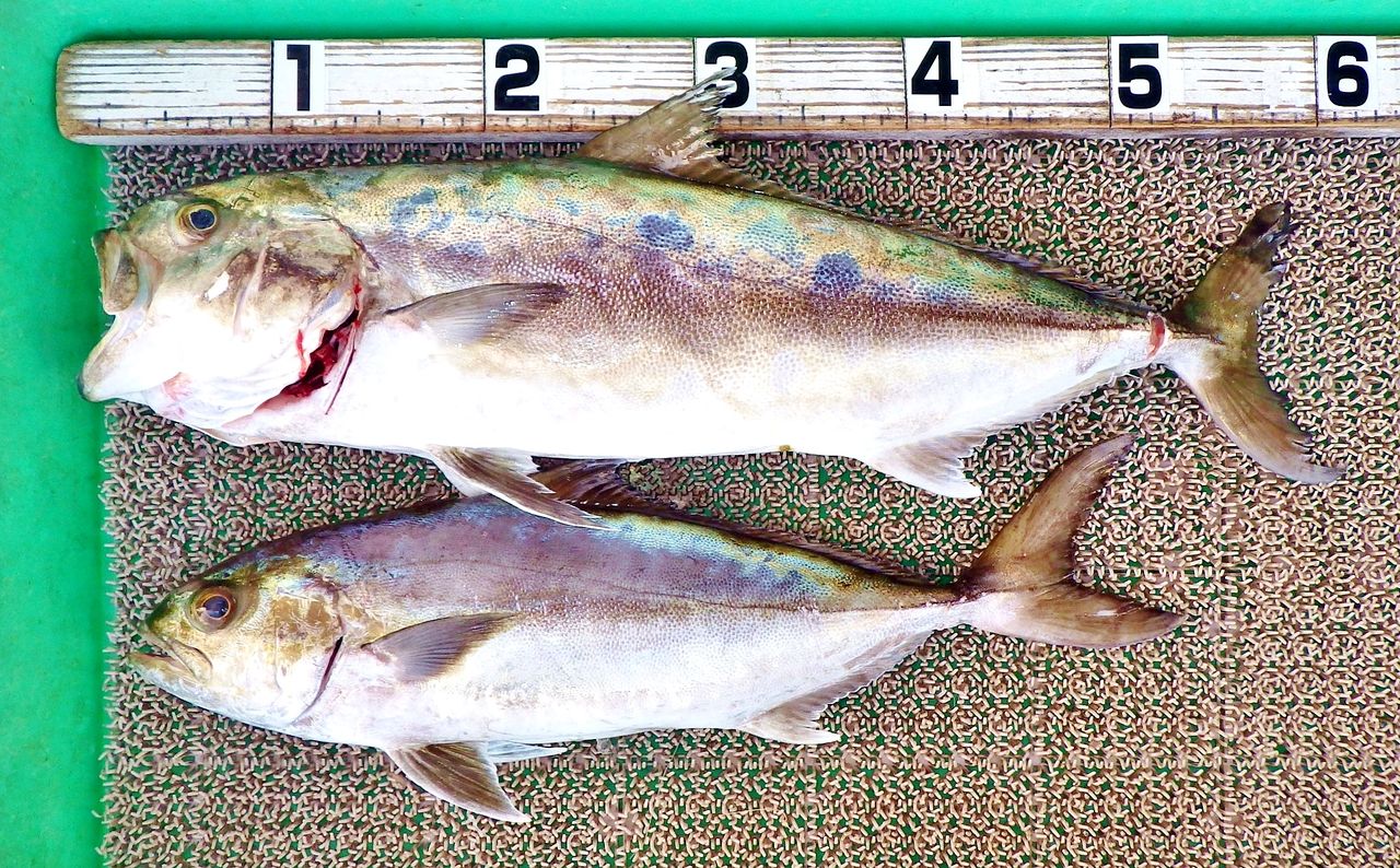 Y野さん2人組、アジの泳がせ釣りで50cmと60cmの良型のアイブリを釣っていました。